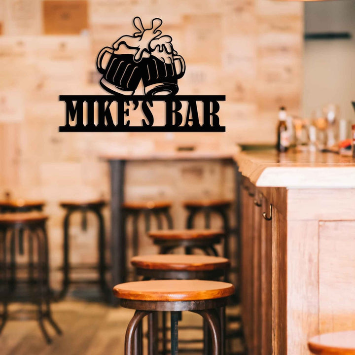 Enhance your entrance with our intricately detailed Custom Metal Bar Sign with Beer Mugs. This minimalist yet sophisticated piece is versatile enough to suit various wall themes, adding a touch of warmth and style to your space.